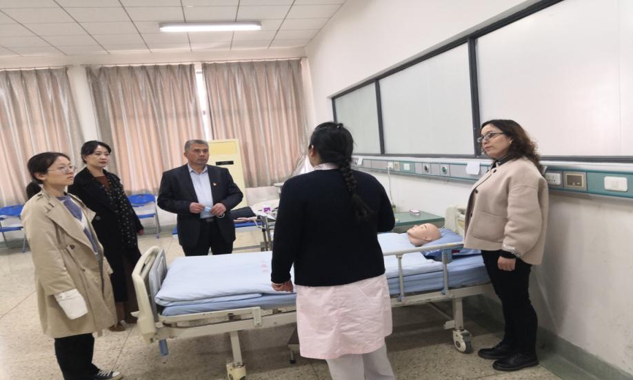 324日下午,冲阿吉一行人员深入调研了学校护理、康复专业人才培养、课程建设、实训基地建设、康复师资队伍建设、技能大赛的举办情况。首先来到医学护理系进行参观交流,医学护理系主任胡必梅分享了江苏省护理技能大赛承办的经验,并带领大家参观了赛场我院教师深入讨论全国及江苏省技能大赛该赛项的操作规程、竞赛流程、题型等方面问题。随后,中医药系副主任郭加佳为克孜勒苏职业学院教师们准备了具有中医药特色的太极扇及诵读经典表演并邀请同参与现场制作香囊、艾条,系部指导教师为克孜勒苏职业学院教师们准备了耳穴埋籽和体质辨识体验。26—28日,正值江苏省职业院校技能大赛中职医护康复技能竞赛在连云港中医药高等职业技术学校承办,李霖老师跟进、深入学习了大赛承办相关事项、师生备赛具体安排等细节,对护理技能提升有了进一步认知。