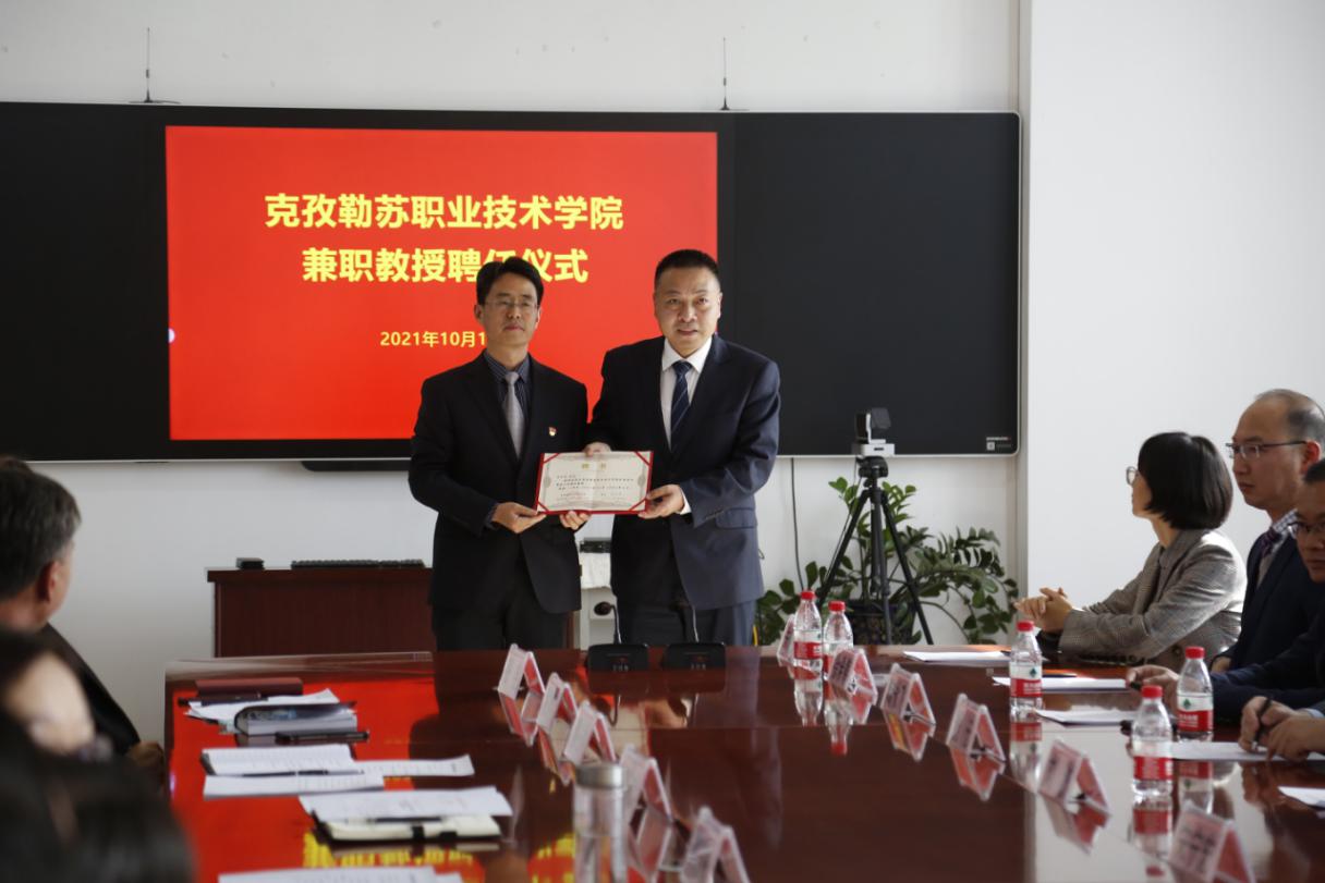 为进一步充实师资队伍,大力增强学院师资水平,2021年10月13日下午,克孜勒苏职业技术学院在图书馆二楼会议室举行兼职教授聘任仪式。仪式由学院党委副书记、院长郭江峰同志主持。
