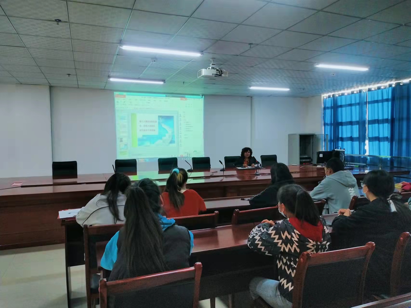 接着,心理咨询室负责人迪丽努尔老师简要分析了目前同学们的心理情况和心理工作,她强调心理委员的自我保健能力是影响班级心理健康状况的重要因素,希望心理委员能在本学期充分探索并积极配合老师落实本班心理健康教育工作,共创和谐健康校园环境。
