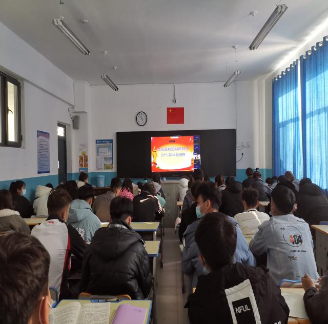 2021年12月1日下午,在学院教学楼一楼会议室,自治区宣讲团成员新疆财经大学马克思主义学院院长闫国疆院长莅临学院宣讲党的十九届六中全会精神,学院全体教职工现场听讲,班主任组织110个班级4000余名学生在教室通过班班通线上听讲,宣讲由学院党委书记李东河同志主持。