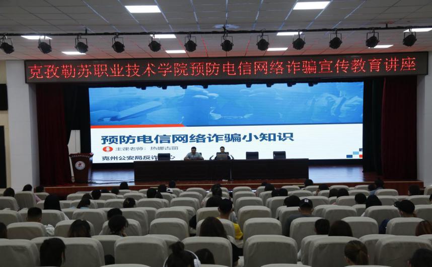 为全面提升我院学生网络安全意识和防护技能,营造安全、清朗的网络环境,进一步增强学生的自我预防、自我保护意识,防止学生受到电信网络诈骗,我院于4月21日下午,由学院学工处、图文信息中心牵头、各系部协助邀请克州公安局反诈中心警官热娜古丽为全体学生开展以“加强防范意识,预防电信网络诈骗”为主题的教育专题讲座。本次讲座以线上线下形式开展,全院学生分两个会场,教文系180名学生在教学楼一楼会议室聆听讲座,其他学生由班主任组织在班里通过班班通观看讲座,总共三千七百余名学生参加了讲座。